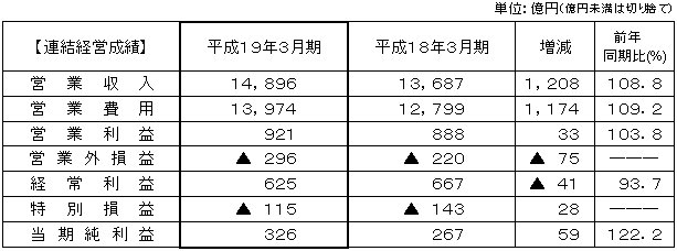 リース機材の返却に伴う諸費用を営業外費用として計上したことにより、経常利益は前年実績を下回りましたが、営業収入は3期連続、営業利益は2期連続過去最高を更新しました。 また、当期純利益は平成13年3月期に次ぐ過去2番目の水準となりました。 |