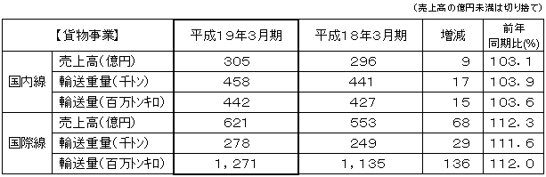 結果として、国内線、国際線それぞれで輸送重量、収入ともに前年同期実績を上回り、郵便事業を含めた売上高で、初めて1,000億円を超えました。 |