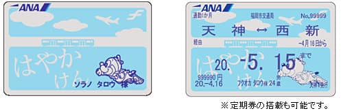 あらかじめANAマイレージクラブに入会が必要です。 ご購入の際はANAマイレージクラブカードまたはANAカードのご提示が必要となります。カードをご持参の上、ご購入ください。 「ANAはやかけん」の発行は、記名式または定期券となります。 |