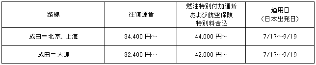 中国線「エコ割ユース」は、満18歳以上〜満28歳未満の方限定で、7日以上滞在される場合に大変おトクになる運賃です。長期滞在、短期留学、夏休みのご旅行、留学生の一時帰国等にぜひご利用ください。 設定期間は2011年7月17日(日)〜2011年9月19日(月)日本出発分(但し、2011年9月26日(月)までに旅行を完了すること)です。 現行の「スーパーエコ割3」と比較をすると、中国各路線で10,000〜35,000円お安く設定しております。 おトクな「エコ割ユース」で、快適な空の旅をお楽しみください。 ■「エコ割ユース」運賃例 (2011年7月31日(日)までにご購入の場合)