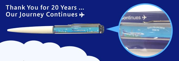 搭乗のお客様には20周年を記念した特製ペンをプレゼント!
