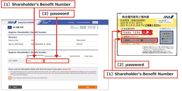 - Your "Shareholder's Benefit Number Notification Card" will not be collected, but please keep it until after you have used the flight.