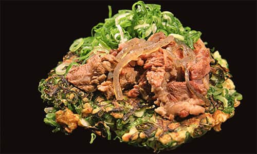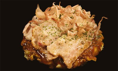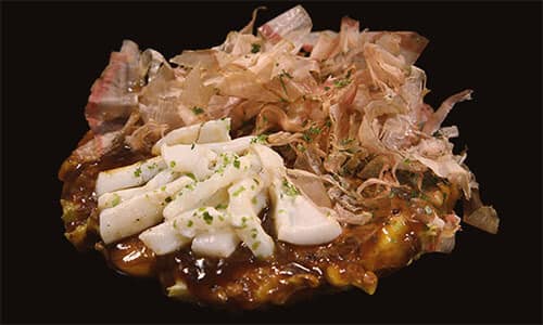 Okonomiyaki mixes cabbage and eggs in a rested batter of flour, broth and yam, and is grilled after combining with toppings. When grilled slowly on a 3-centimeter-thick iron plate, the finished okonomiyaki becomes fluffy on the inside and slightly charred and crispy on the outside. Great care is given to everything from the ingredients to grilling methods; even the selection of cabbage and the way of cutting are changed depending on the season. The special spicy homemade sauce is also worth noting.