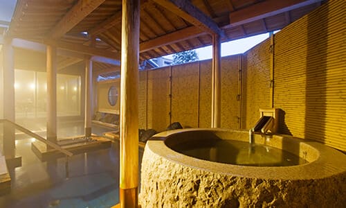 At a pH value of 9.0, the hot spring water of Ogoto Onsen in Shiga Prefecture is a simple alkaline hot spring that exceeds standard levels and has a skin smoothing effect after bathing. The gentle water is safe even for people with sensitive skin and pregnant women.