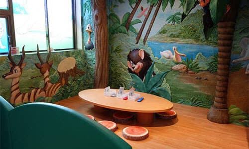 Designed after a robot factory of Tezuka's work, the workshop allows visitors to experience basic and simple animation production. On several sheets of animation video paper, draw pictures moving little by little, and when they are imported into a computer, the moving pictures will be displayed on a monitor. Even if you aren't good at drawing, you can experience the process of animation production by coloring and editing images on a computer. Further inside is a reproduction of Tezuka's studio, and the artist himself might occasionally turn this way as he works.