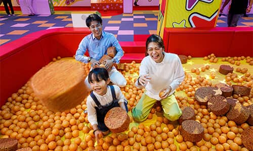 Located in Osaka's Minami area, Little Oyatsu Town Namba is an admission-free theme park that is fun for all ages. Enjoy various attractions such as making your very own Baby Star Ramen snack in your favorite flavor, a sweets buffet and dining, as well as interactive entertainment using digital technology.