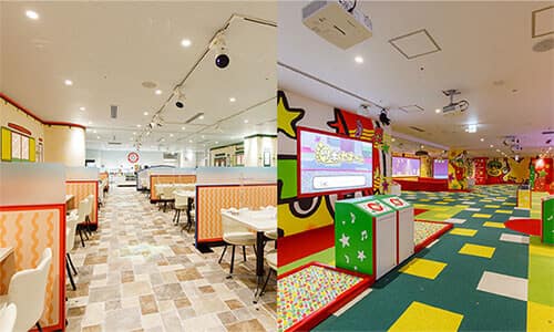 At Sweets Park, enjoy a delightful buffet of around 25 kinds of homemade sweets, as well as authentic food menus created by chefs. Menus that use Baby Star Ramen are also a must-try. After 15:00, the food area also offers an a la carte menu in addition to the buffet. Oyatsu Park is an interactive amusement area with nine types of action-filled attractions using digital technology. Attractions are based on a point system, so both children and adults can compete and play together!