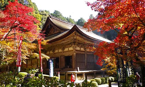 Kongorin-ji Temple was opened in 741 by the Emperor Shomu and high-ranking priest Gyoki, who whose efforts were instrumental in enabling the casting of the Great Buddha statue in Nara. The leaves throughout the mountain in fall are famous for their vivid crimson color and are known as "bloody maples."