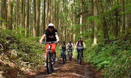 This cycling tour runs through little-known parts of Nikko not mentioned in guidebooks and features off-road and on-road courses that allow riders to feel and indulge in the changing seasons. The tour passes through the town of Nikko bustling with people as well as World Heritage sites. Then, as riders energetically pedal along an off-road course along the riverbed of the Daiyagawa River, an ancient road lined with cedar trees over 300 years old comes into view. The true pleasures of this tour are parking the bikes and stopping at a clear stream, lying down in a field and gazing at the sky and taking photos.