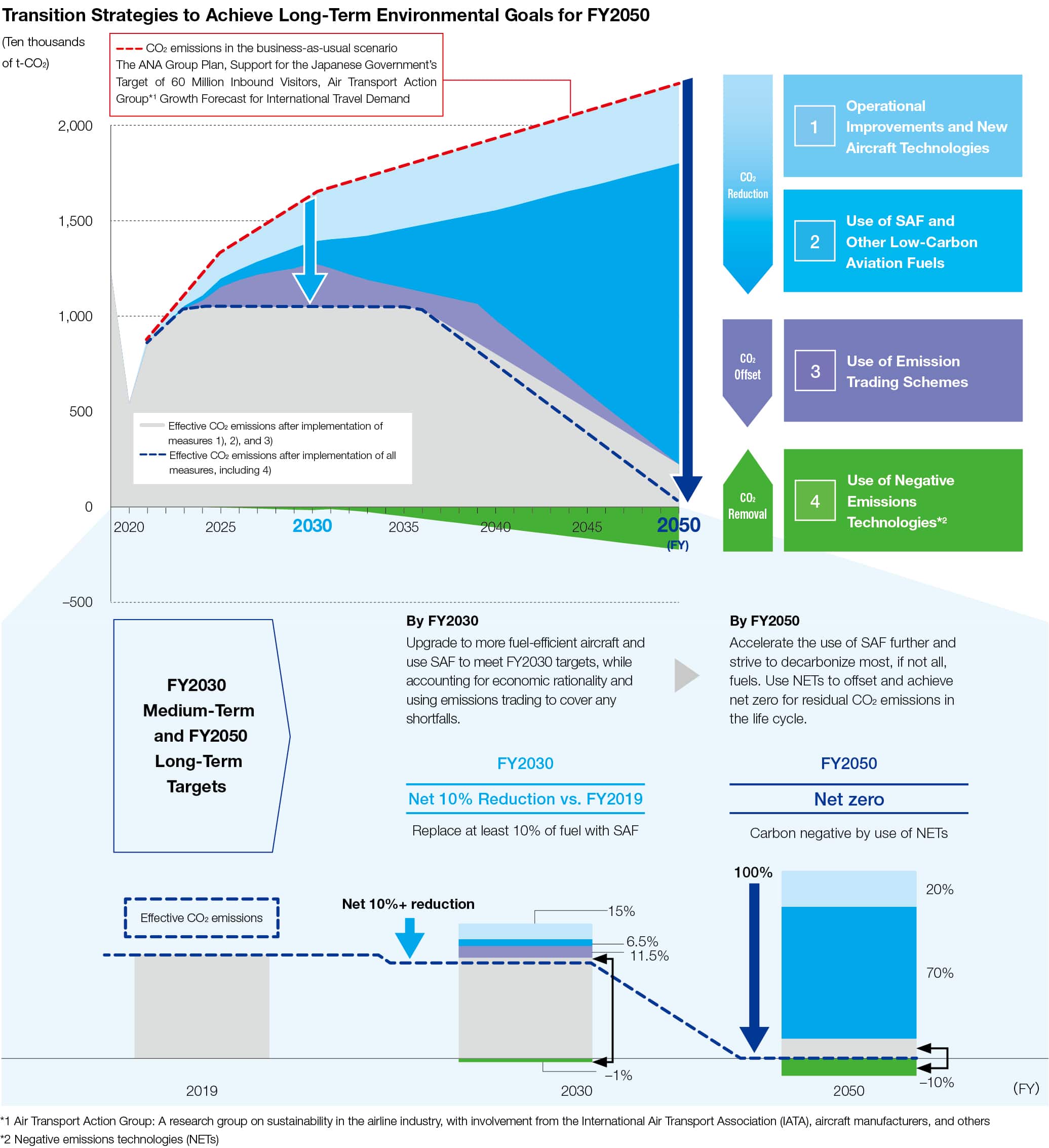 Technological innovation 20%/Utilization of SAFs 70%/NETs 10%