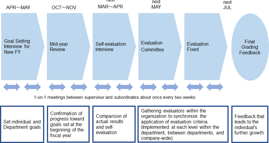 - Four interviews with supervisor per year (Goal Setting, Mid-year, Self-evaluation, and Final Grading Feedback)