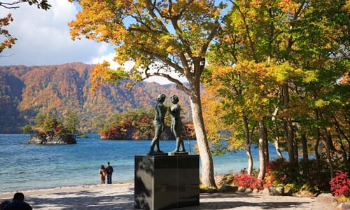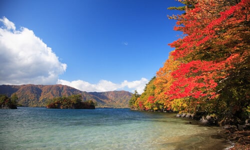 東北を代表する景勝地の十和田湖には数多くの展望台があり、美しい湖を眼下に見下ろすことができます。樹海ラインの終点に位置する、標高631メートルの発荷峠(はっかとおげ)展望台は、正面には外輪山、その後方に南八甲田の櫛ヶ峰(くしがみね)を望み、十和田湖随一の眺望。標高630メートルの紫明亭(しめいてい)展望台から見る十和田湖はハートの形に見えると評判です。日本八景の碑が建つ絶好のビューポイントで、静かに十和田湖の美しさを堪能できます。