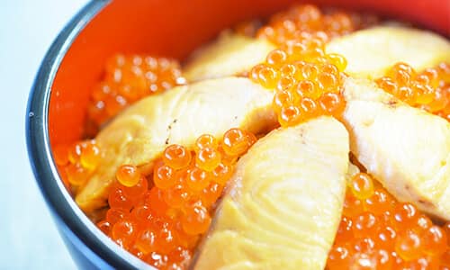 宮城県南部の海沿いのまち、亘理町(わたりちょう)。東北第2の大河、阿武隈川の河口にあります。阿武隈川の鮭は、秋の味覚として、古くから将軍にも献上されていた名物です。亘理町荒浜が発祥の郷土料理「はらこ飯」は、鮭を煮た汁で炊きあげたご飯の上に、脂がのった鮭と艶やかなはらこ(イクラ)をたっぷり載せていただきます。一口頬張れば、米と鮭、はらこが三位一体となった至福の味わいを感じられる、秋限定の逸品です。