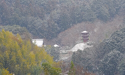 いにしえの古都を感じることのできる奈良県明日香村に岡寺はあります。創建はおよそ1,300年前、古くは「龍蓋寺(りゅうがいじ)」という寺名でした。これは飛鳥の地を荒らしていた悪「龍」を岡寺を開山した義淵僧正(ぎえんそうじょう)が池の中に封じ込め、大きな石で蓋をしたという伝説が由来です。悪龍の災厄を取り除いたとして、岡寺は日本最初の厄除け霊場としても知られています。