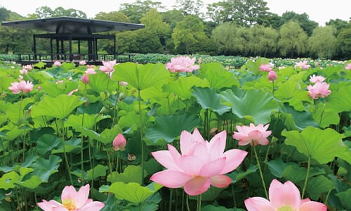 1970年に開催された大阪万博跡地に整備された「緑に包まれた文化公園」。敷地内には「日本庭園」、「自然文化園」さらに文化・スポーツ・レジャー・宿泊施設群が整備され、総面積約26ヘクタールもあります。大阪万博のシンボル「太陽の塔」などが残り、四季折々の自然が楽しめるほか、さまざまなイベントやお祭りなども開催されています。
