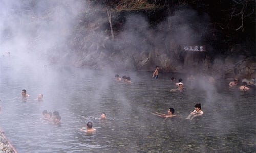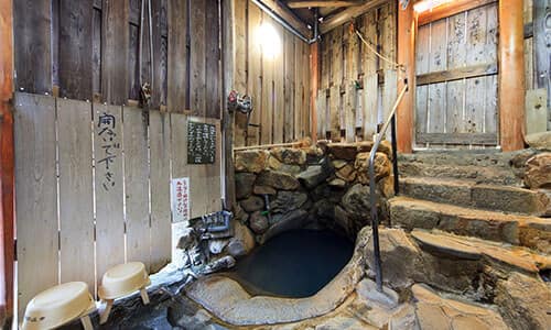川湯温泉は、その名のとおり川から湯が湧く温泉。前を流れる熊野川支流の大塔川(おおとうがわ)の川原を掘れば70度以上の源泉が湧き出します。自分の好きなところを掘って湯舟をつくり、熱ければ川の水を引いて温度調節するという野趣あふれた自分専用の露天風呂が作れます。夏は川遊びで冷えた体を温め、冬になれば川をせき止めて作る冬限定の広大な露天風呂「仙人風呂」を楽しめます。