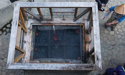 約1,800年前に発見されたという日本最古の温泉、湯の峰温泉。熊野へ詣でる前に、人々はここで身を清め、長旅の疲れを癒したとされる由緒ある温泉です。趣のある旅館や民宿が軒をならべる静かな温泉街には、世界遺産に登録されている温泉「つぼ湯」があります。一度に3名程、30分交代制で入浴ができます。日によって7回も湯の色が変化するといわれ、世界でも珍しい世界遺産に登録された入浴できる温泉です。