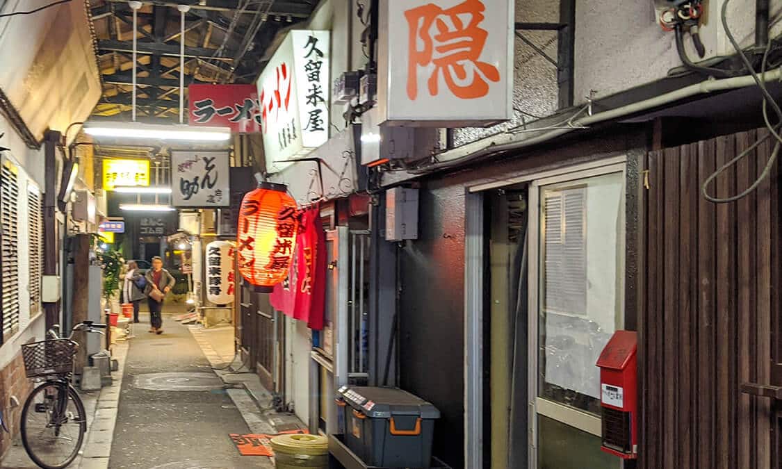 중화요리의 탕면을 원류로 하며, 돼지 뼈로 국물을 낸 구루메 라멘은 돈코쓰 라멘의 원조입니다. 지금은 뽀얀 국물이 일반적입니다만, 당시의 구루메 돈코쓰 라멘은 맑고 탁하지 않은 국물이었습니다. 뽀얀 국물은 실수로 불을 세게 조절해 버린 일을 계기로 우연히 탄생되었다고 합니다. 구루메의 라멘은 그 후 규슈 각지에 영향을 끼쳤으며, 전국적으로 확산되었습니다. 전통의 맛부터 뉴웨이브까지 구루메의 라멘을 맛볼 수 있는 곳이 밤의 번화가 '문화 거리'에 있는 '구루메 라멘 골목'입니다. 타임 슬립한 듯한 시대의 자취를 간직한 뒷골목에 라멘을 중심으로 한 개성 넘치는 유명 가게들이 모여 있습니다.
