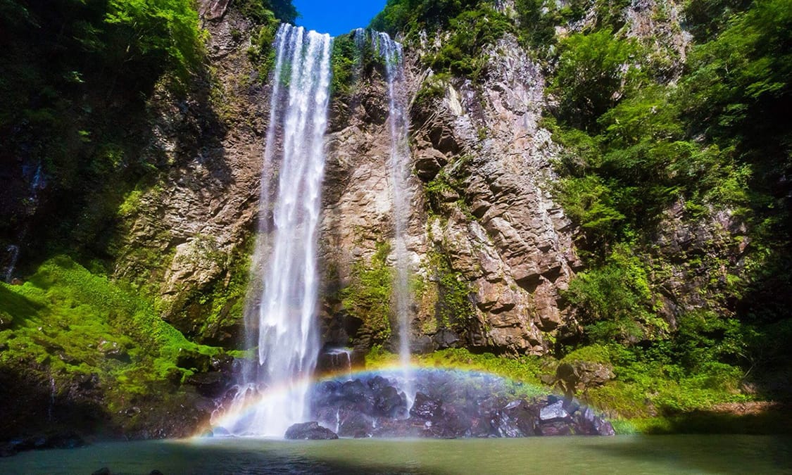오이타 현 우사시의 후키노노타키 폭포는 무지개가 걸릴! 단풍시기도 추천합니다.