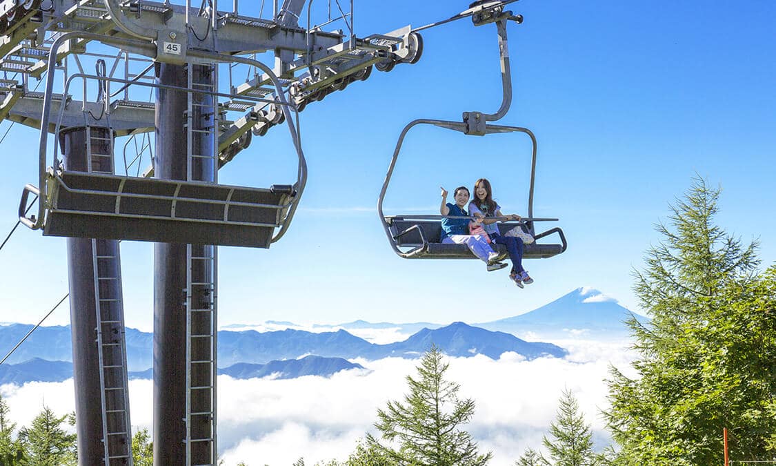 겨울은 초급자부터 상급자까지 즐길 수 있는 스키장. 그리고 봄부터 가을에 걸쳐서는 해발 1,900m에 펼쳐진 절경 테라스에서 휴식 체험. 후지산과 노베야마 고원의 조망이 훌륭한 정상에서 보내는 시간은 어느 계절에 방문해도 기대를 저버리지 않습니다.