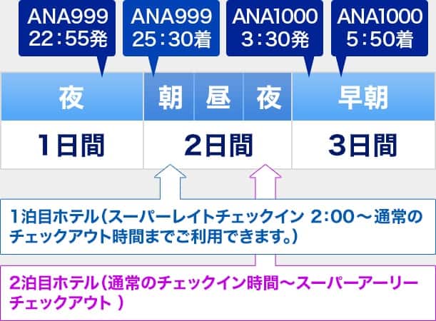 ANA1000便をご利用の場合、ご出発までお部屋をご利用いただけます。