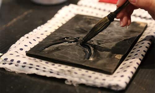 木版浮世绘的作品是由画师、雕师、拓印工匠合作完成。上方浮世绘馆的4层开设了其中的“拓印染”这一环节的体验教室。上色、整理、对纸、拓印。颜色要分多次反复拓印上去。单是“拓印”一个环节,就有许多道工序,通过亲身感受,可以加深对于浮世绘的理解,从而更好地欣赏作品。体验教室分为初级、中级、高级3种课程,采用预约制。请通过上方浮世绘馆主页的咨询表进行预约。
