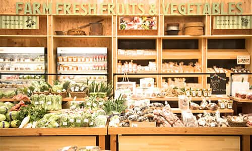 走進大門後,就會看到 3 個白色三角形屋頂建築一字排開。這就是「FARM CIRCUS MARKET」,提供當地新鮮蔬菜與嚴選雜貨,品項豐富。若想要稍事休息,推薦您到美食廣場。這裡有咖啡廳、麵包店和餐廳,您可在此輕鬆享用以當地食材製作的飲品等。使用大量當季食材製作的健康定食「當季農家飯」,是餐廳的人氣餐點。而「Days Kitchen」是地產地銷的義大利餐廳,以窯烤披薩為招牌賣點。您可享受餐桌服務,慢慢品嚐餐點。