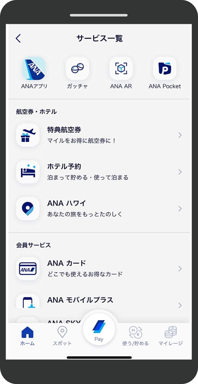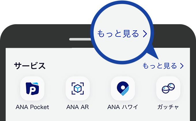 ANAサービス もっと見るを押すとANAの各種サービス一覧を開くことが出来ます