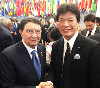 会場では、ANA篠辺社長のお祝いメッセージが流され、また開幕式に出席したANA上席執行役員 中村欧州室長と、UNWTOのリファイ議長が握手を交わし、これからの協力を約束しました。