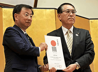 4月28日に行われた認定式では、協議会代表自治体である酒田市長に文部科学大臣より日本遺産認定証が交付されました。
