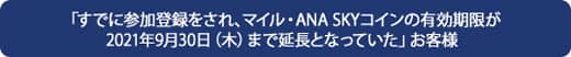 ※  マイル・ANA SKY コインの有効期限は、参加登録後、即時に延長はされません。