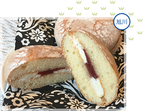 柔らかいスポンジに酸味のある梅ジャムとクリームを挟んだ洋菓子。旭川をはじめとする道産の素材を使用し、クリームの甘さと爽やかな梅ジャムが織りなすハーモニーが絶妙な味わいです。他にもホワイトチョコクリームや、マロン餡・かぼちゃ餡が入ったタイプなどさまざまな種類があります。