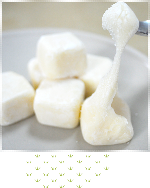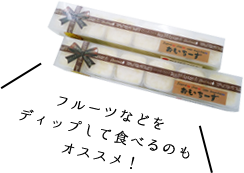 北海道のおみやげの定番である、チーズケーキの概念を覆す一品が登場! つきたてのお餅のようにモチっとしており、トローッと伸びる面白い食感が魅力的です。 もちろん濃厚なチーズのコクも感じることができる、見た目でも味でも楽しめるおみやげです。