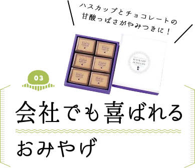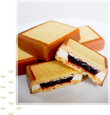 北海道名産の果実「ハスカップ」を使用したお菓子。酸味が強いハスカップですが、 ハスカップジャムの周りにある、バタークリーム・クッキー・チョコレートと一緒に食べることで、 絶妙な甘酸っぱさが口いっぱいに広がります。コーヒーや紅茶と一緒に食べたくなるお菓子ですね!
