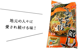 濃厚味噌の甘辛ダレ、親鶏のかしわ肉、蒜山高原キャベツの三拍子がそろったご当地グルメ。昭和30年代、蒜山高原の各家庭オリジナルのタレで焼そばやジンギスカンなどを食べることがブームになった時、「ますや食堂」がつくったこだわりの焼そばがルーツといわれています。