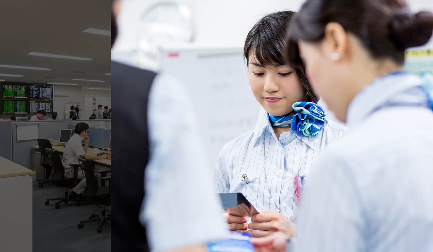 プライベートの勉強も大切。仕事+αをできるかどうか かくして入社したが、冒頭の逸話にあるように、不規則な勤務に戸惑いもあったという。「1カ月間の座学と10日間のOJT(実践教育)で基本的な業務を学ぶのですが、聞いていた以上に体力勝負でした。また“おもてなし”の印象が強かったのですが保安要員としても重要な役割があって、爆発物や不正物品が機内に持ち込まれたり、テロなどが起きないよう、注意することも大切です」覚えることは膨大だった。「国際線ではANAだけではなく、他の様々な航空会社の受託ハンドリングを行います。運用システムが航空会社ごとに異なるため、チェックインなどのオペレーションも変わってきます。それらもすべて覚えなくてはなりません。私はANA以外に、韓国の航空会社を担当することが多いので、日本語と英語のみならず、チェックインに必要な韓国語も覚えるようにしています」竹内はとにかく真面目だ。プライベートの時間をかなり勉強に割いているという。ほとんど「常に受験勉強状態」なのだとか。「それでも、入社したころが一番勉強していました。現在は座席調整などを行うフライトコントローラーという業務を学んでいるのですが、試験が非常に難しく、“鬼門”と呼ばれています」