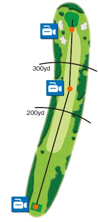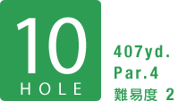 広々としたフェアウェイが一直線にのびている。しかし、275ヤード付近から上り勾配になっているため、ティーショットの飛距離が出ないと、ピンの根本が見えず、セカンドショットの距離感がつかみにくくなる。縦に長いグリーンをオーバーすると低い地点まで落ちてしまい、プロでもそこからグリーンを狙うのは難しい。また、完全な受けグリーンなので、高いボールでピンの手前に落としたい。アゲンストの風が多く、フェアウェイが比較的狭い為、距離と正確性が求められるホールである。