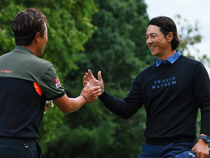 最終日、単独トップでスタートしたのはトータル16アンダーで大会2勝目、ツアー通算4勝目を狙う大槻智春選手。トップを2打差で追うのは今季アメリカツアーを主戦場としている金谷拓実選手。さらに1打差のトータル13アンダーで石川遼選手と宋永漢選手が追いかけました。