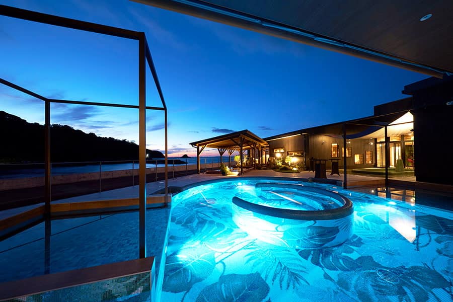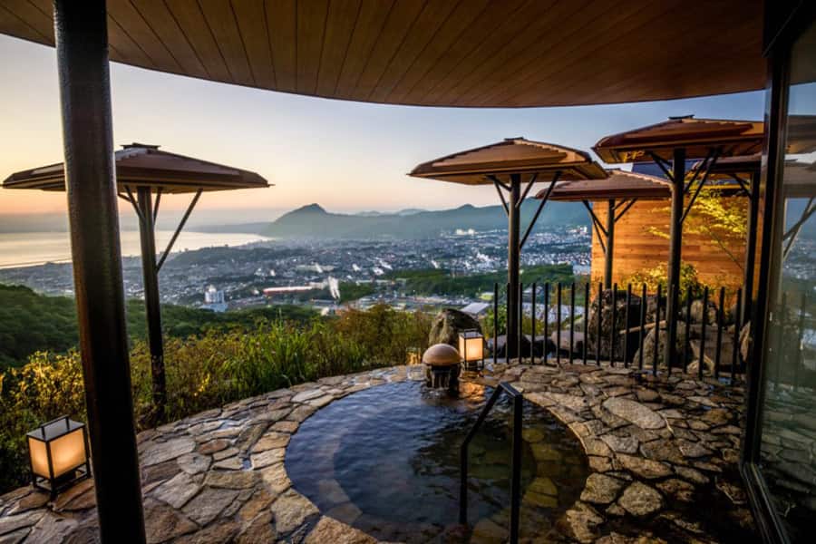 Darin zeigt sich eine neu definierte, moderne Form der traditionsreichen Onsen-Kultur Japans. Genießen Sie den spektakulären Blick von den Außenbecken aus, während Sie im heilenden Wasser von Beppu enstpannen. Dessen Mineralien wird nachgesagt, die Haut zu reinigen und zu verschönern. Das private Onsen bietet Ihnen ein exklusives Erlebnis von vollständiger Entspannung.