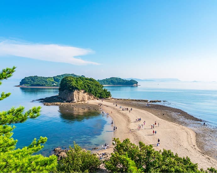 Mit seinen zahlreichen Naturwundern und einem aufregenden Wasserpark strotzt Japans kleinste Präfektur vor Erlebnissen. Machen Sie einen Spaziergang im 400 Jahre alten Ritsurin-Park auf einem Pfad, auf dem einst die feudalen Fürsten entlangschritten. Oder gehen Sie Hand in Hand über die mysteriöse Angel Road – eine 500 Meter lange Sandbank, die nur zweimal täglich aus den Fluten auftaucht. Das soll die ewige Liebe bringen. Anschließend probieren Sie „Sanuki Udon“, die berühmten quadratischen Nudeln von Kagawa, die den früheren Namen der Präfektur tragen. Kagawa ist ein magischer Ort für Familien und Paare.