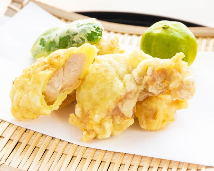 Mit mehr Onsen als in jeder anderen Präfektur ist Oita ein Paradies für Liebhaber heißer Quellen. Begeben Sie sich auf eine Tour durch die Hölle von Beppu (Beppu Jigoku Meguri), um die 7 berühmten heißen Quellen zu sehen, die sich in Farben von kobaltblau bis blutrot zeigen. Eine der beliebtesten Onsen-Städte, Yufuin Onsen, befindet sich am Fuße des Berges Yufu. Dort können Sie auch Galerien, Cafés und Museen besuchen, bevor Sie in einem der vielen traditionellen japanischen Reisegasthäuser (Ryokan) übernachten. Ob als Snack oder als Mahlzeit, bestellen Sie Toriten (kurz für „Hähnchen-Tempura“), ein traditionelles Gericht aus Oita, das aus knusprig-saftigen Hähnchenstücken besteht, die in Sake, Sojasauce und Knoblauchpulver getränkt sind.