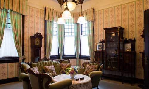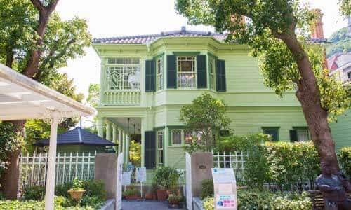Das Moegi House (Sprossengewächshaus) wurde 1903 als Residenz für den amerikanischen Generalkonsul gebaut. Getreu seinem Namen ist das zweistöckige Herrenhaus aus Holz mit schönen, hellgrünen Außenwänden und zwei markanten Erkerfenstern ausgestattet. Hier sehen Sie luxuriöse Designs, wie z. B. die Treppe in eleganten Arabeskenmustern und unverwechselbare Kaminsimse. Vom Balkon im zweiten Stock genießen Sie den herrlichen Blick auf die Stadt Kobe.