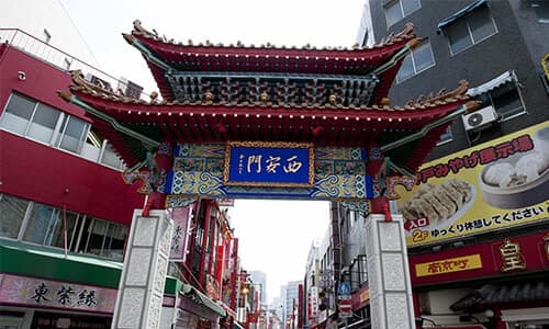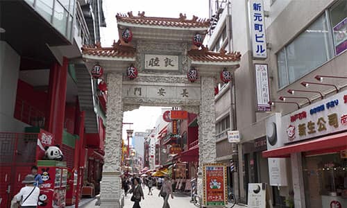 Am östlichen Eingang von Nankinmachi befindet sich das Choanmon-Tor, das 1985 errichtet wurde. Für den Bau des Turmtors hat China erstmals eine Exportgenehmigung für weißen Marmor erteilt. Es bezaubert mit zahlreichen Drachen- und Wolkenfiguren. Nachts erzeugt die Beleuchtung in wechselnden Farben eine skurrile Atmosphäre. Es gibt noch zwei weitere Turmtore in Nankinmachi: das Kaieimon-Tor im Süden und das Seianmon-Tor im Westen. Im Norden begrüßen chinesische Löwenstatuen die Besucher.