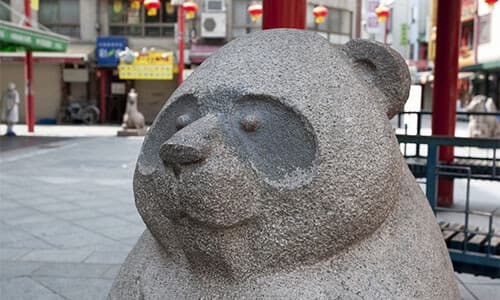 Der Nankinmachi Square befindet sich im Zentrum der Stadt und ist ein großartiger Ort für Fotos. In der Mitte des Platzes steht eine Azumaya, ein kleines sechseckiges Ruhegebäude, dessen doppelschichtiges Dach mit zinnoberroten Säulen und an die Decke gemalten Drachen eine exotische Atmosphäre schafft. Bei Dunkelheit bietet sie einen noch fantastischeren Anblick. Vor der Azumaya stehen die Götter des Geldes Cai Cai (Junge) und Rai Rai (Mädchen). Es soll Glück bringen, sie zu berühren. Rund um den Platz befinden sich 13 Tierstatuen – die 12 chinesischen Tierkreiszeichen und ein Panda.