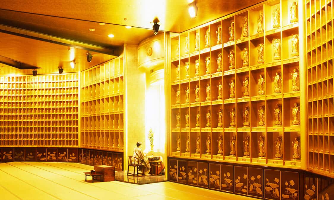 Im Inneren dem Buddha können Besucher an verschiedenen Arten der Meditation und Verehrung teilnehmen. In der „World of Gratitude and Thankfulness“ im zweiten Stock gibt es 77 Schreibtische für Shakyo, eine Form der Meditation durch Kopieren buddhistischer Schriften. Es heißt, dass die Wünsche des Schreibers durch sorgfältiges Schreiben der einzelnen Zeichen wahr werden. Shakyo-Novizen können das Ritual auch mit einem Anfängerset erleben. Genießen Sie also einen wertvollen Moment des inneren Friedens, während Sie alle Sinne auf Ihren Pinsel konzentrieren. Tatsächlich ist die gesamte Buddha-Statue wie ein großer Tempel aufgebaut, mit einem Raum für Zeremonien, einem Lichtraum und einer Ausstellung mit zahlreichen Buddha-Statuen.