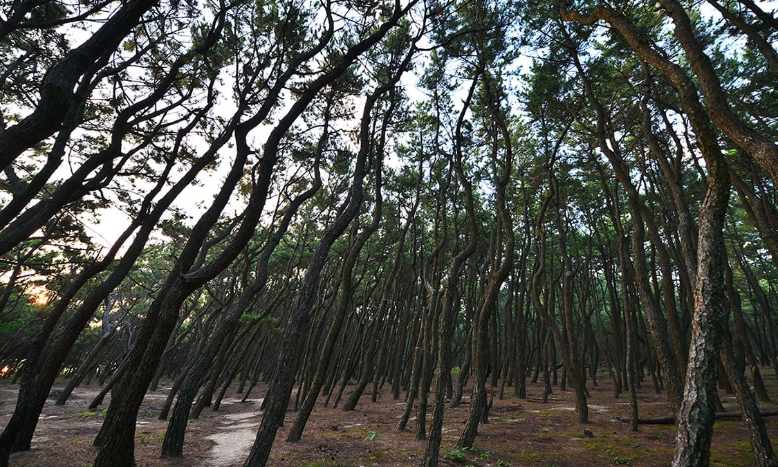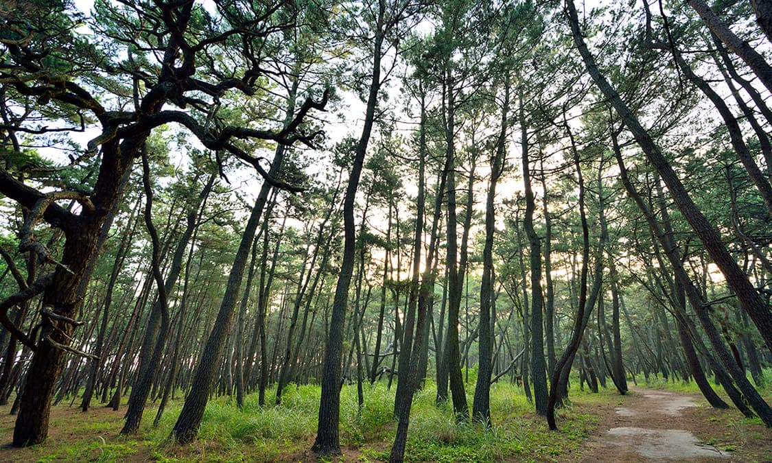 Niji no Matsubara zählt neben Miho no Matsubara (Präfektur Shizuoka) und Kehi no Matsubara (Präfektur Fukui) zu den drei großen Pinienhainen Japans. Man sagt, dass Terasawa Shima-no-Kami Hirotaka, der Fürst der Karatsu-Domäne, die Kiefern vor etwa 400 Jahren als Schutz vor Wind und Gezeiten pflanzen ließ. Heute säumen etwa eine Million Pinien, hauptsächlich japanische Schwarzpinien, einen Landstrich von 4,5 km von Osten nach Westen. Dieser Pinienhain gilt als der schönste Japans.