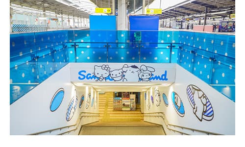 Die Welt von Sanrio Puroland beginnt direkt beim Verlassen des Zuges am nächsten Bahnhof, der Tama-Center Station, die mit süßen Sanrio-Figuren verziert ist. Auf dem Weg nach Sanrio Puroland begrüßen Hello Kitty-Flaggen und -Bilder die Besucher von verschiedenen Orten aus. In Zusammenarbeit mit Tama City unternimmt Sanrio Puroland Anstrengungen, um die örtliche Gemeinde als Stadt zu beleben, in der Sie Hello Kitty begegnen können.