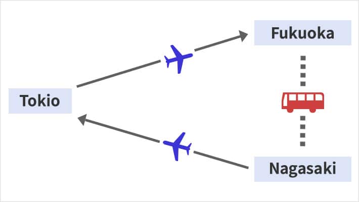 Hinflug: Von Tokio nach Fukuoka und (mit dem Auto, der Bahn usw.) weiter nach Nagasaki