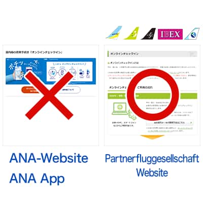Für von Partnerfluggesellschaften durchgeführte Flüge*2 ist der Online Check-in über die ANA-Website/ANA-App weiterhin für Flughäfen verfügbar, die das alte System verwenden.