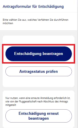 Fluggäste, die dazu angeleitet wurden, sollten mit „Entschädigung erneut beantragen“ fortfahren.